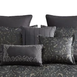 Revamp the look of your bedroom and embellish it with a regal look with the inclusion of this 8 piece King comforter set. Crafted generously from polyester fabric, it has been accentuated in deep red and gray hue which gives it an edgy appeal. The repeated trellis pattern adds a tint of creativity to it and lets it upscale your setup in the best possible manner.